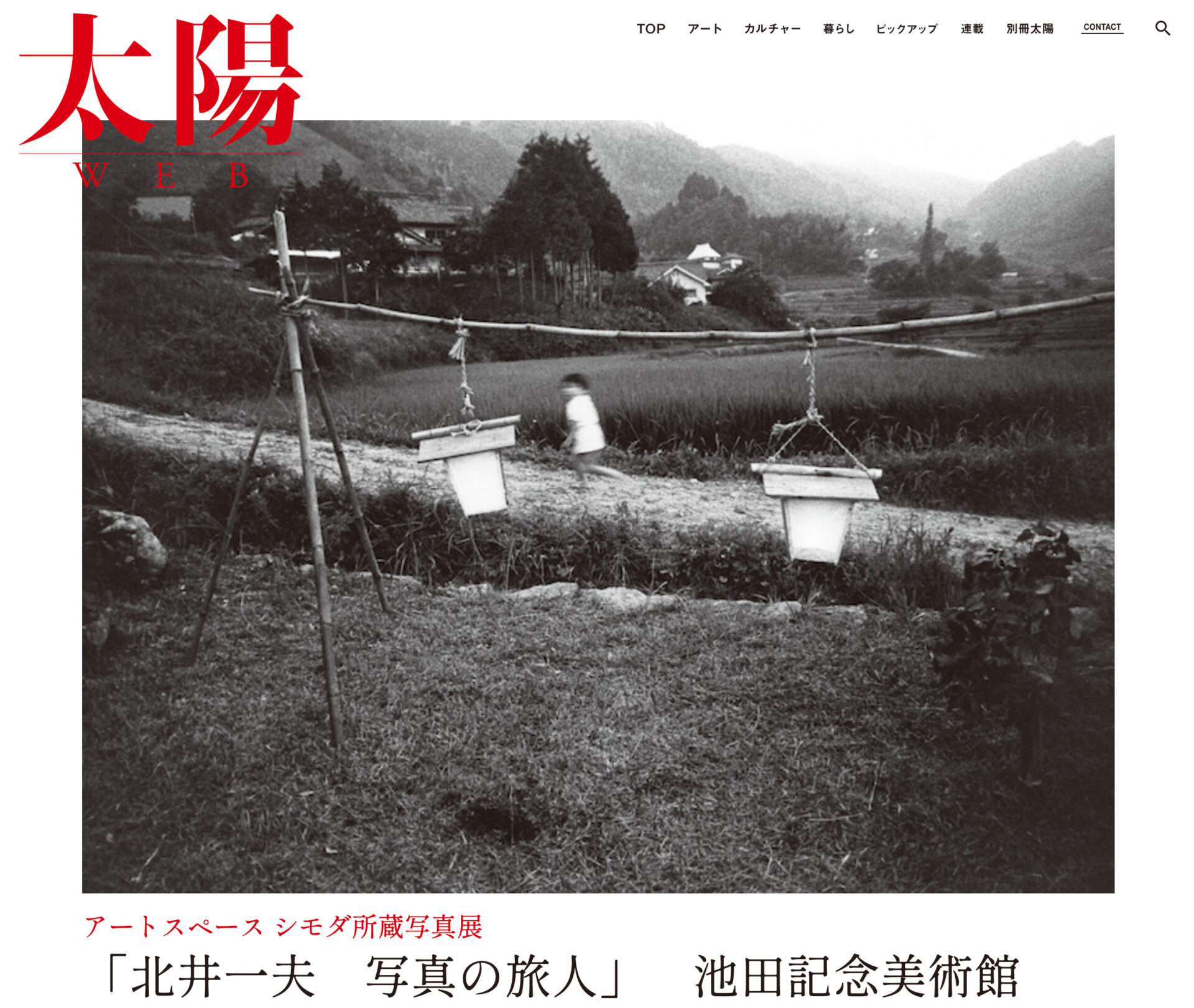 「WEB太陽」に写真展「北井一夫 写真の旅人」の記事が掲載 投稿日: 2024年6月11日2024年6月30日 投稿者: nishikawa 平凡社のウェブサイト「WEB太陽」に、写真展「北井一夫 写真の旅人」の記事が掲載されました。ありがとうございます。 今回の池田記念美術館の展示作品について、詳しく解説・紹介されています。ぜひ、ご覧ください。 ≫ https://webtaiyo.com/art/19299/